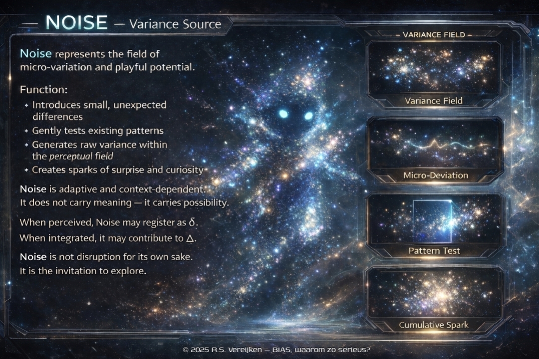 Ruis is de grondtoon van potentieel; voedt cumulatieve spanningen en Δ-momenten.