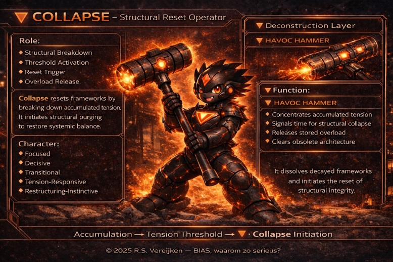 Ruis → δ (stil signaal) → Mismatch realiseert → Frictie (cumulatieve spanning) → Δ (integratie) → Collapse → Rebuilt → gestabiliseerd Δ-moment